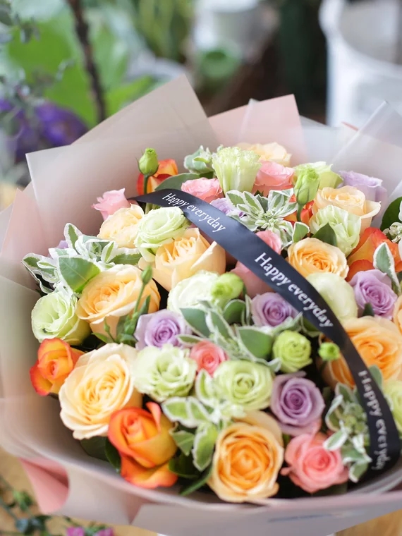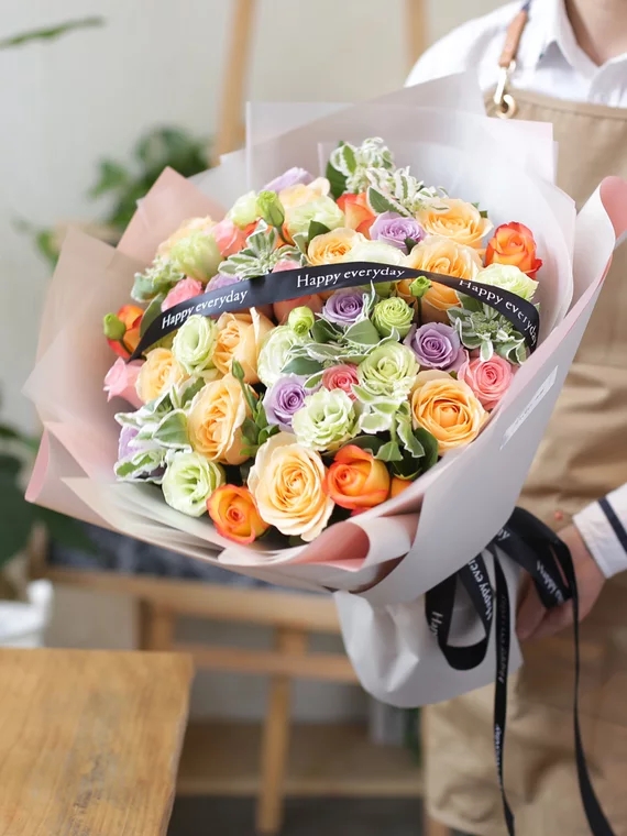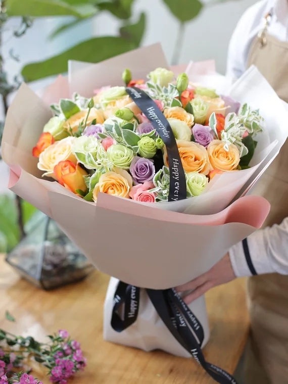 11朵香槟玫瑰花+5朵紫玫瑰+洋桔梗精美如图包装