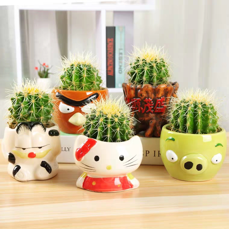 【仙人球配瓷盆】仙人球盆栽1盆防辐射去甲醛桌面办公室精致盆栽花盆样式随机
