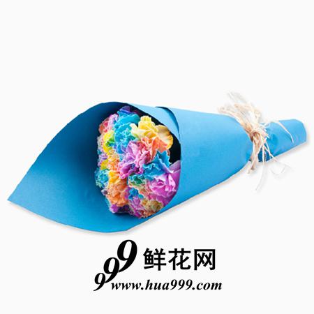 11朵进口彩虹康乃馨,高档包装纸,拉菲草