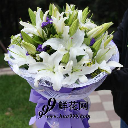 28朵百合花(9枝)精美包装,蝴蝶结扎束