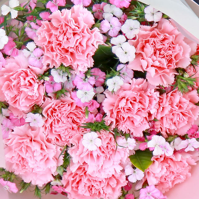 母爱永远——11朵粉色康乃馨,搭配相思梅