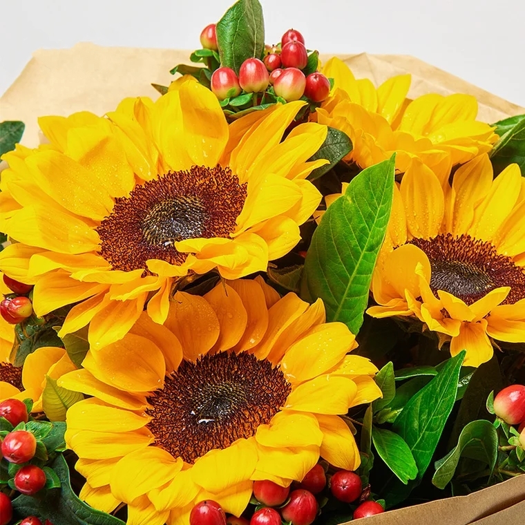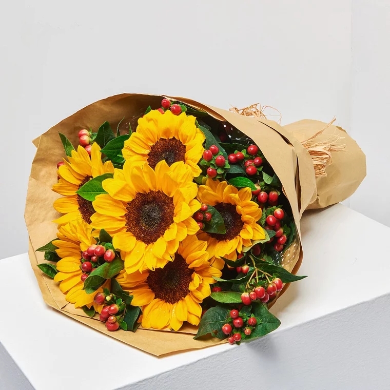 6朵向日葵,精美包装纸包装,蝴蝶结扎束