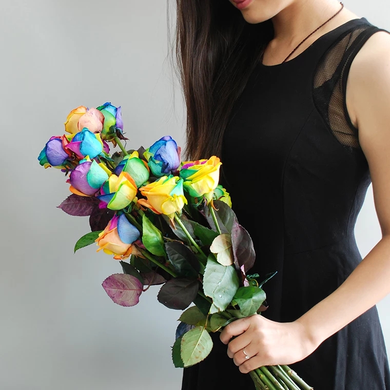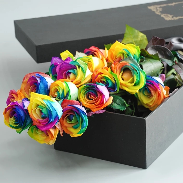 18朵厄瓜多尔进口 RAINBOW ROSE 七彩许愿玫瑰 精美礼盒盛放