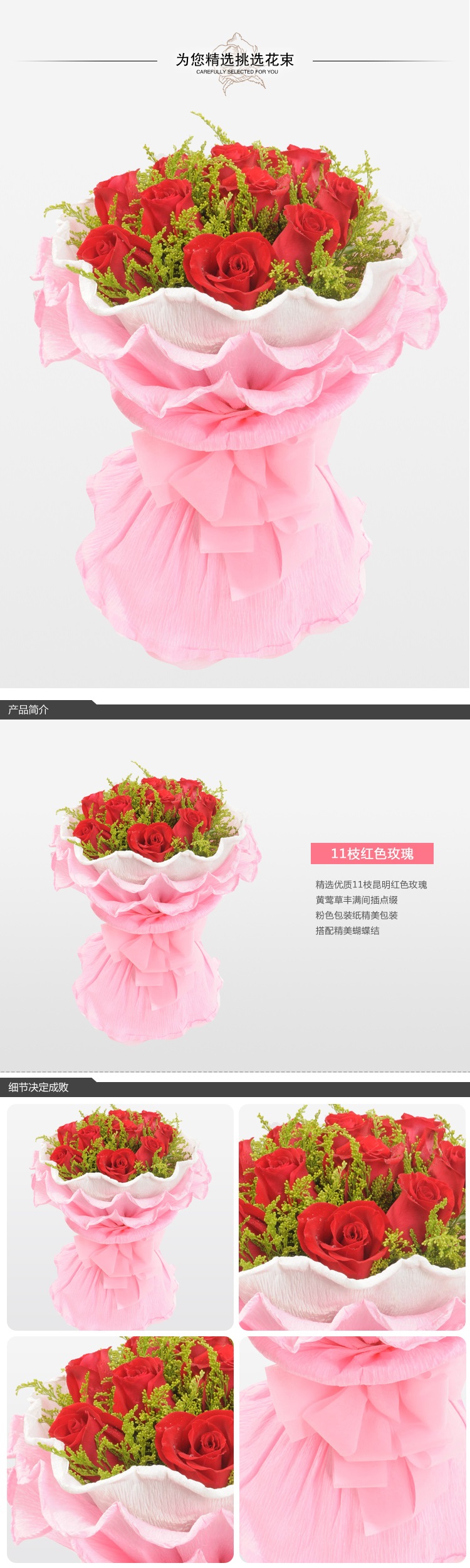 星河醉梦/11朵红玫瑰精美花束...