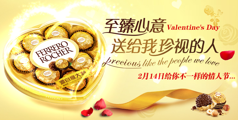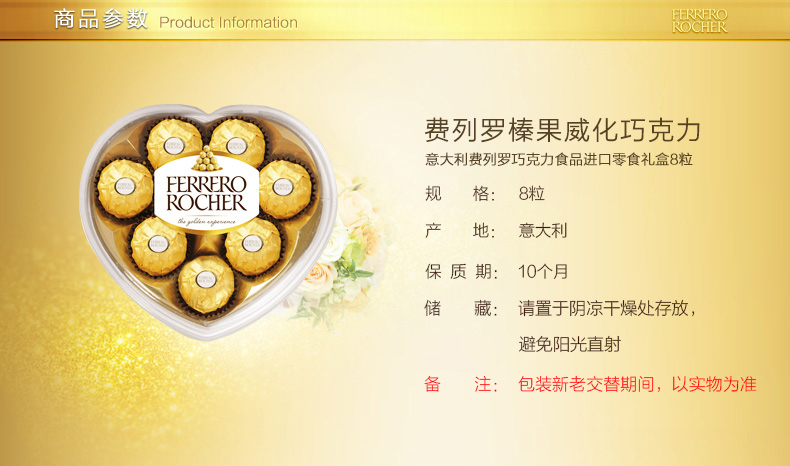 费列罗巧克力心形礼盒装 费列罗巧克力8颗心形礼盒装