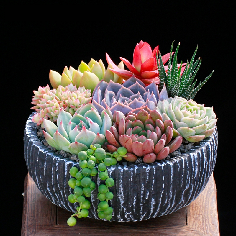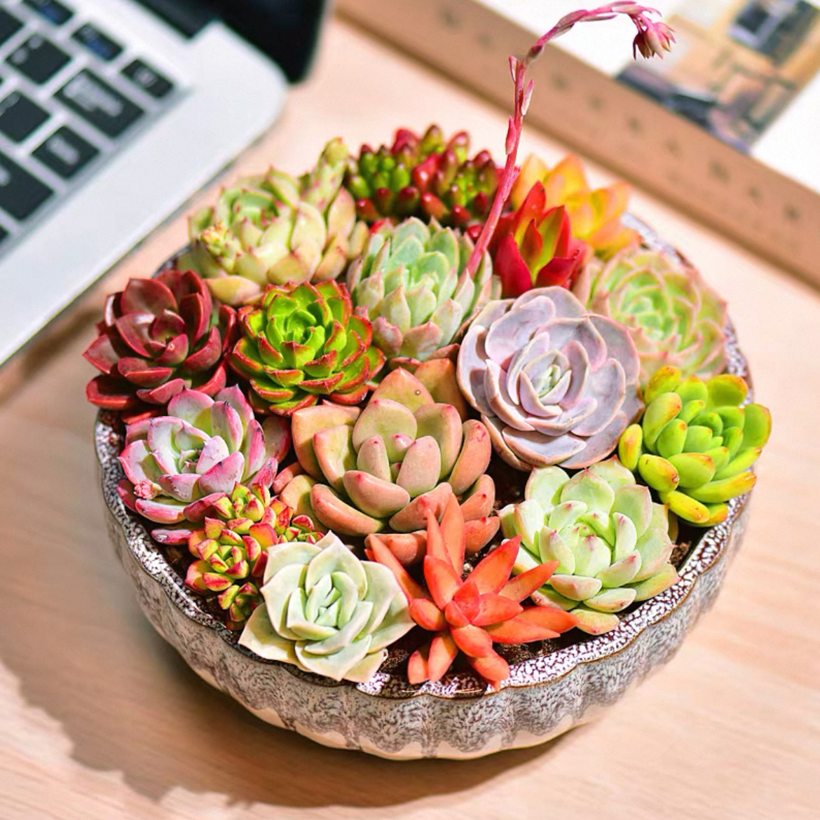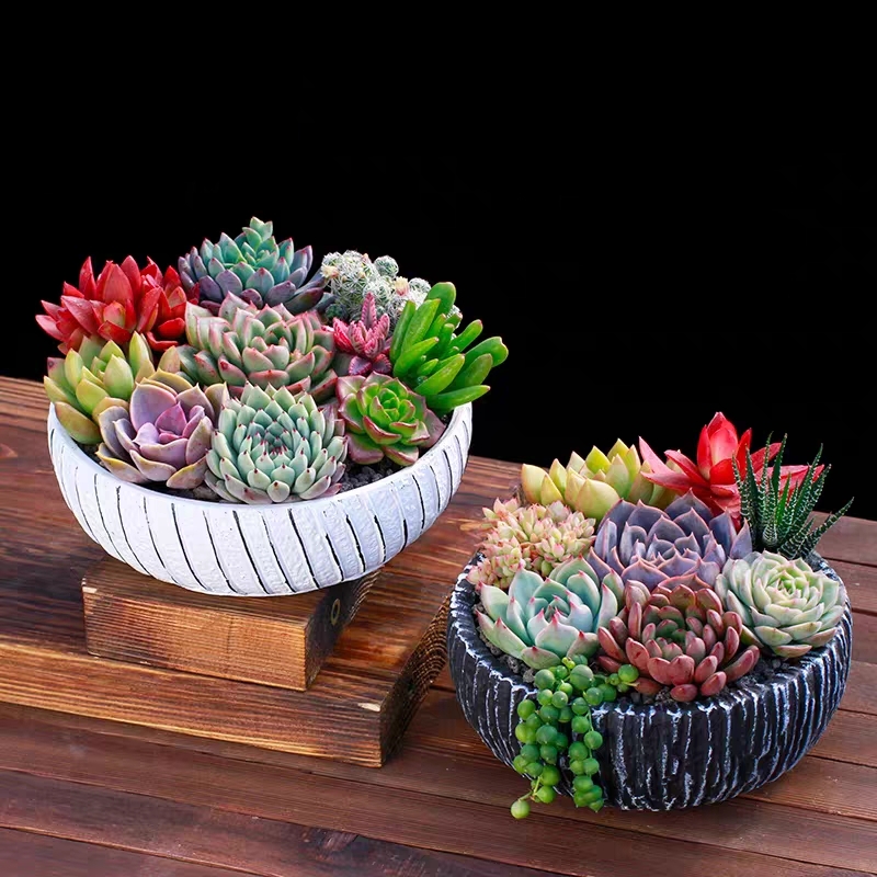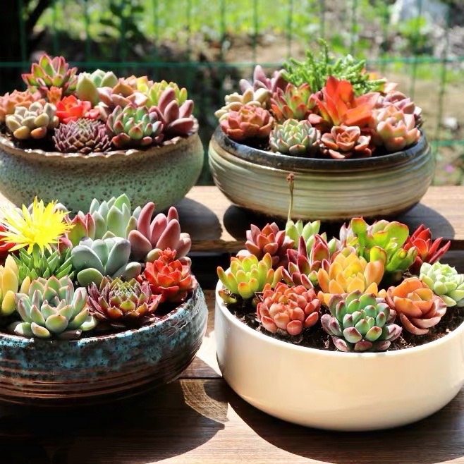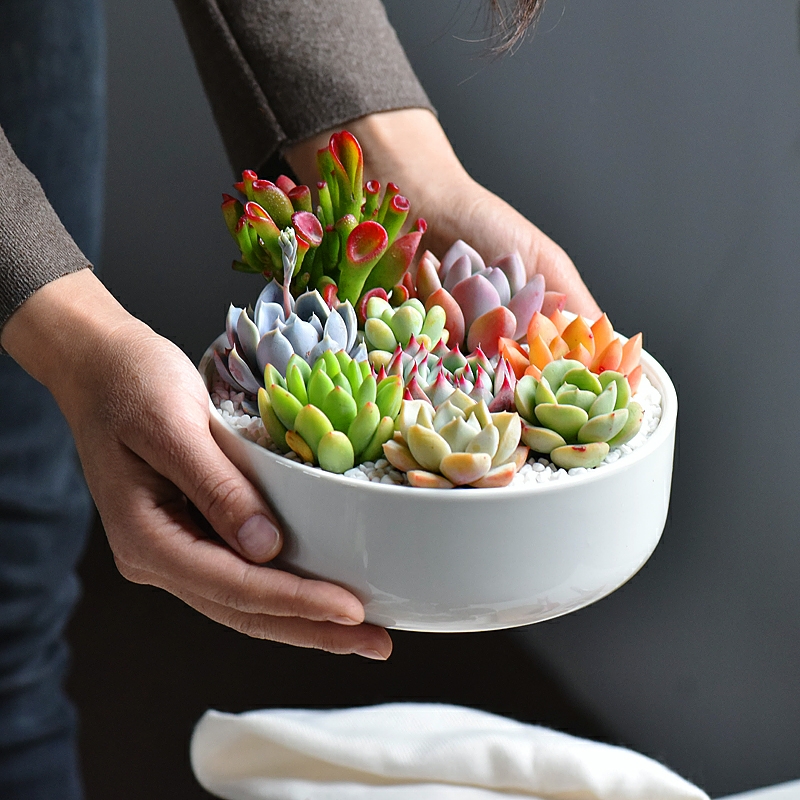 多肉植物配圆形瓷盆组合盆栽(花盆样式随机)