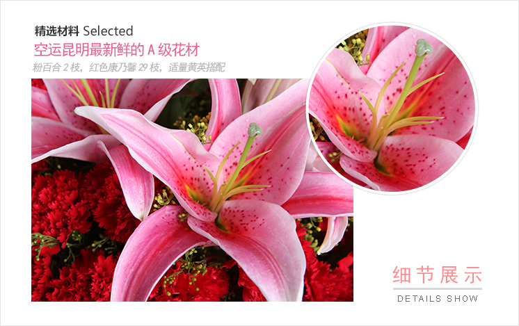 感激/6朵粉色百合花29朵红色康乃馨精美花束包装