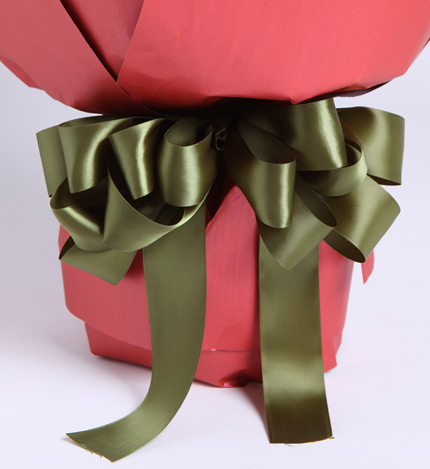 包 装:内层香槟色皱纸,红色平面纸,绿色缎带花结