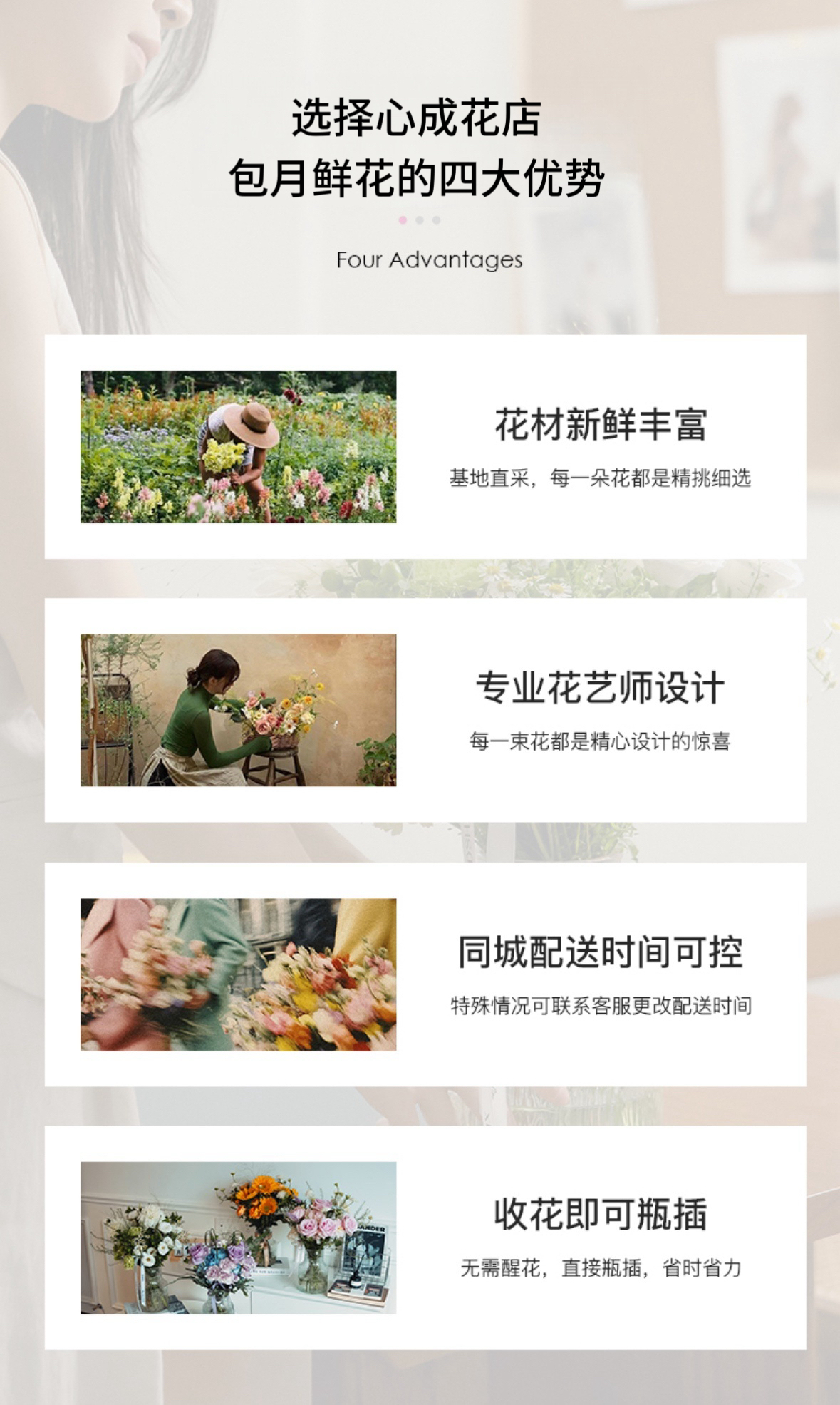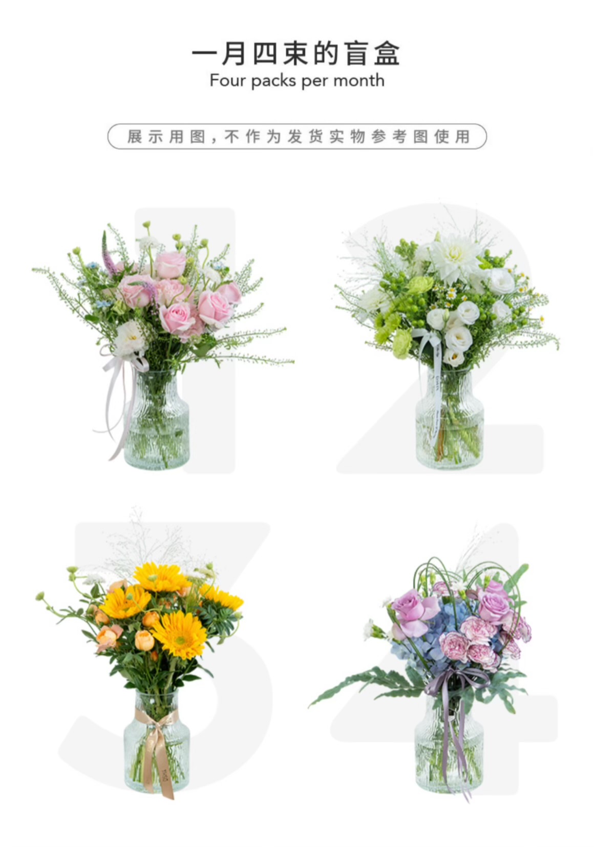 138****7767 (商城会员) 周一配送 【一个月】【4束鲜花】 2019-03-21 11:48:34