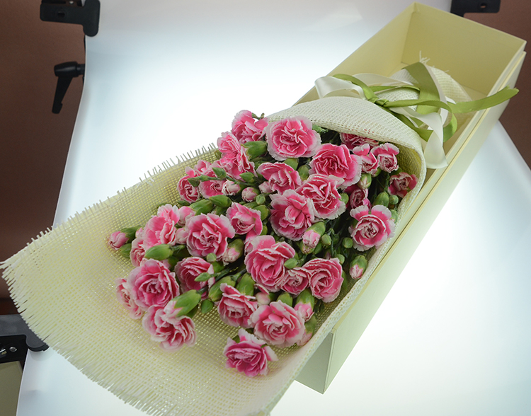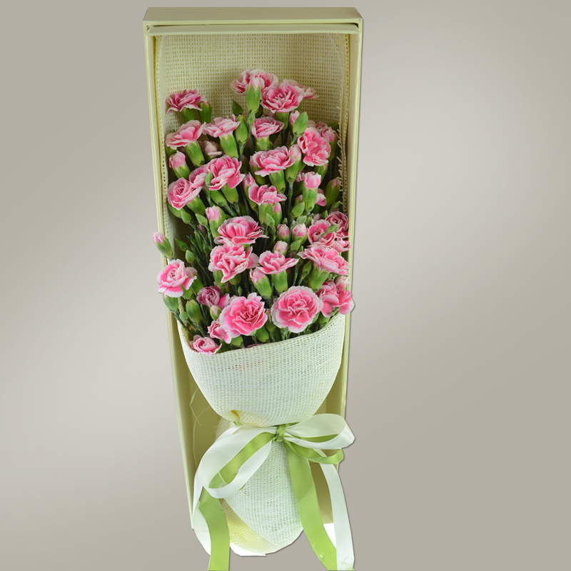 多头粉色康乃馨精美礼盒盛放