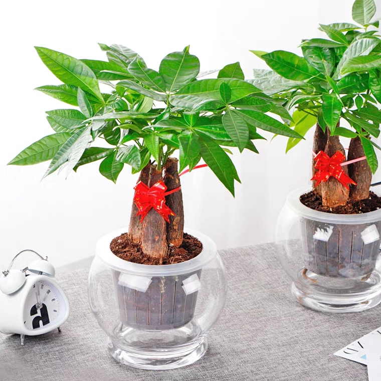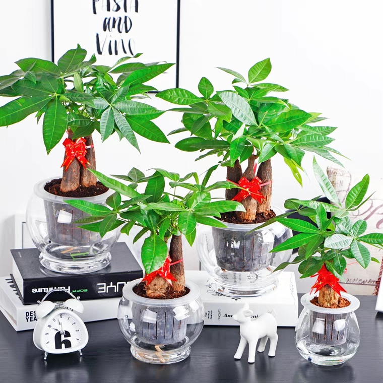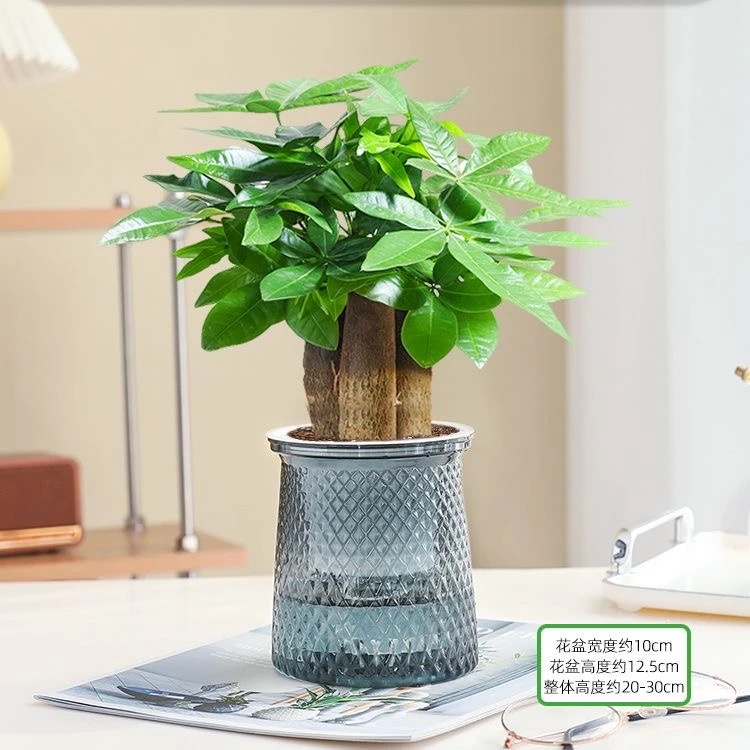 三杆发财树配自吸水懒人花盆室内办公桌面水培植物盆栽水培发财树