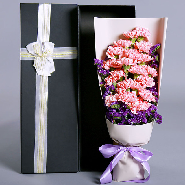 19朵粉色康乃馨,搭配勿忘我