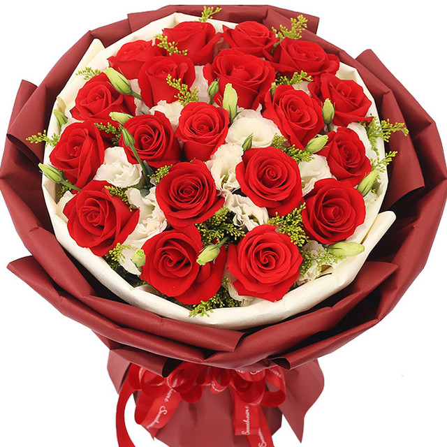19枝红玫瑰,桔梗、黄莺穿插点缀