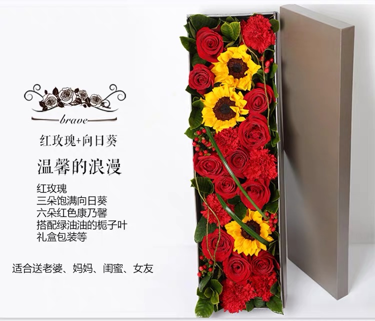 11朵红玫瑰+3朵向日葵+6朵康乃馨 礼盒盛放