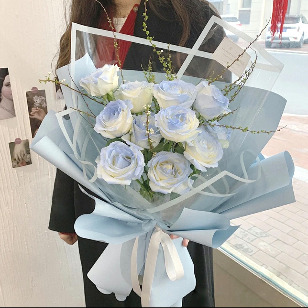 时尚女神/11朵碎冰蓝玫瑰花精美花束包装/网红款玫瑰花/稀缺花礼推荐/热门鲜花