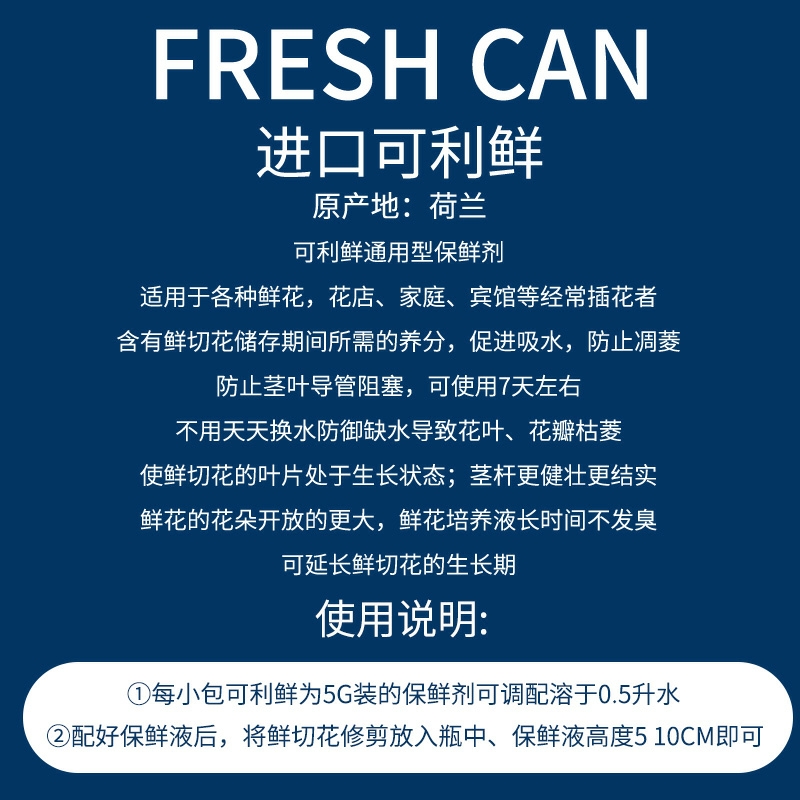 可利鲜荷兰进口可立鲜1包鲜花保鲜剂营养液延长剂百合通用型5g小袋装