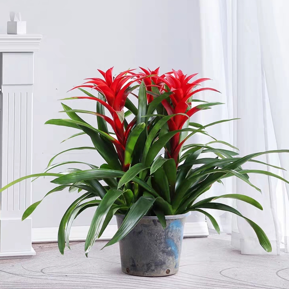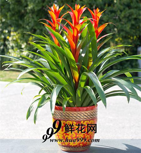 3株红色凤梨配精美磁盆(花盆样式随机)