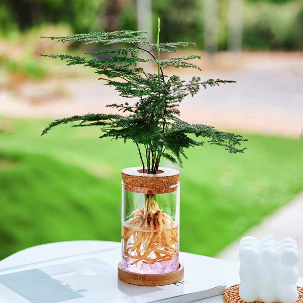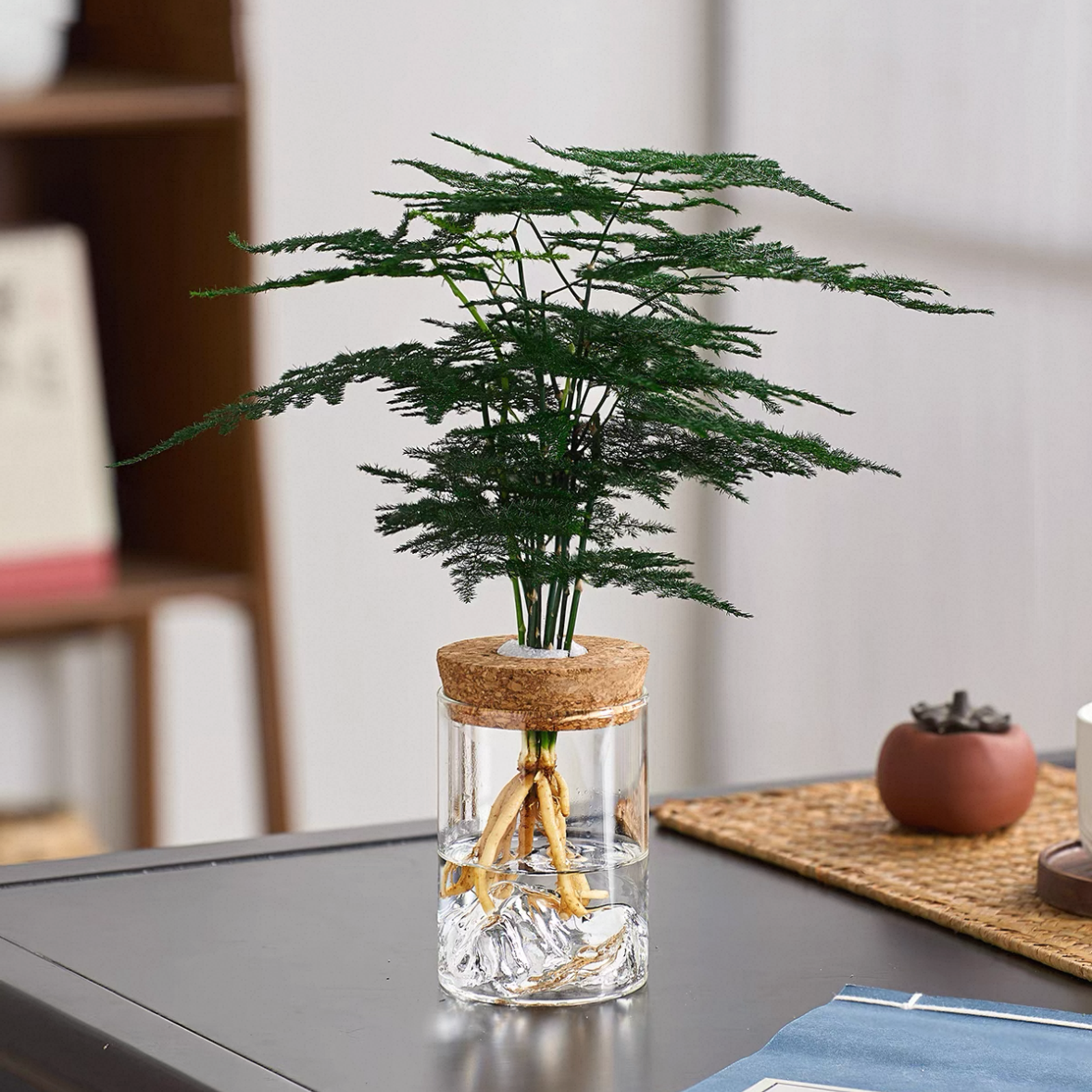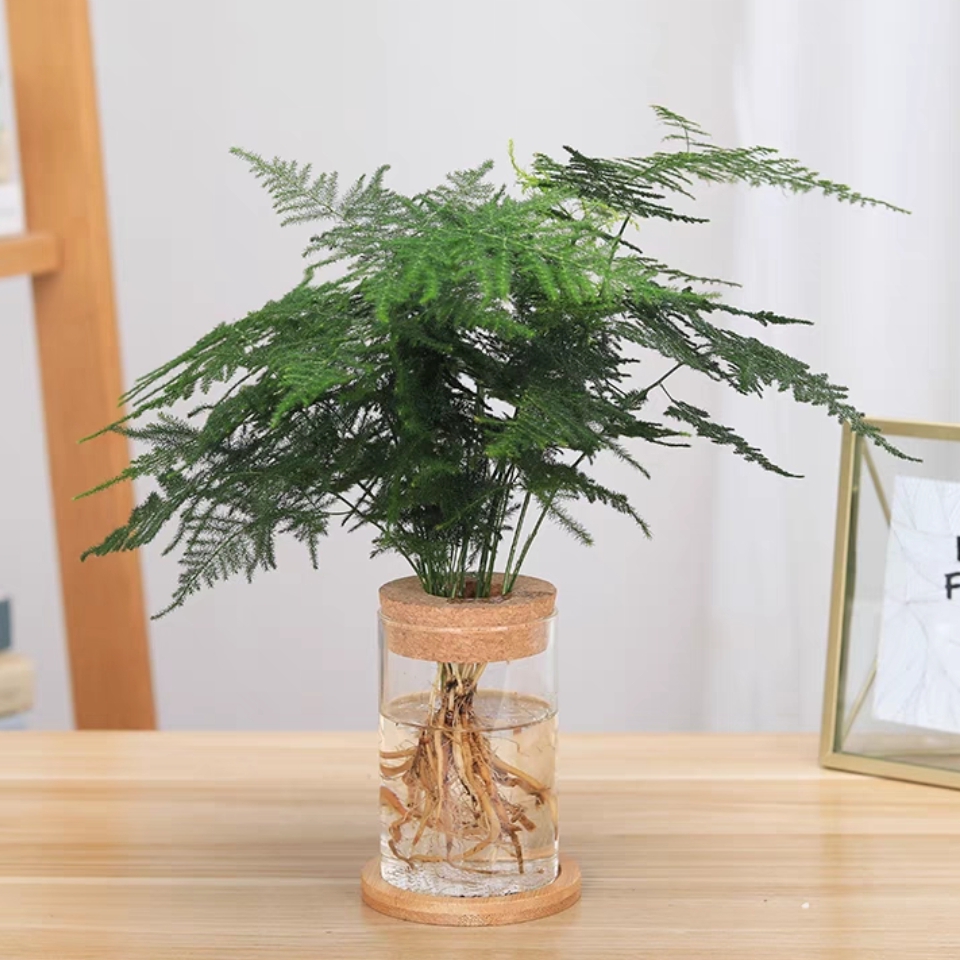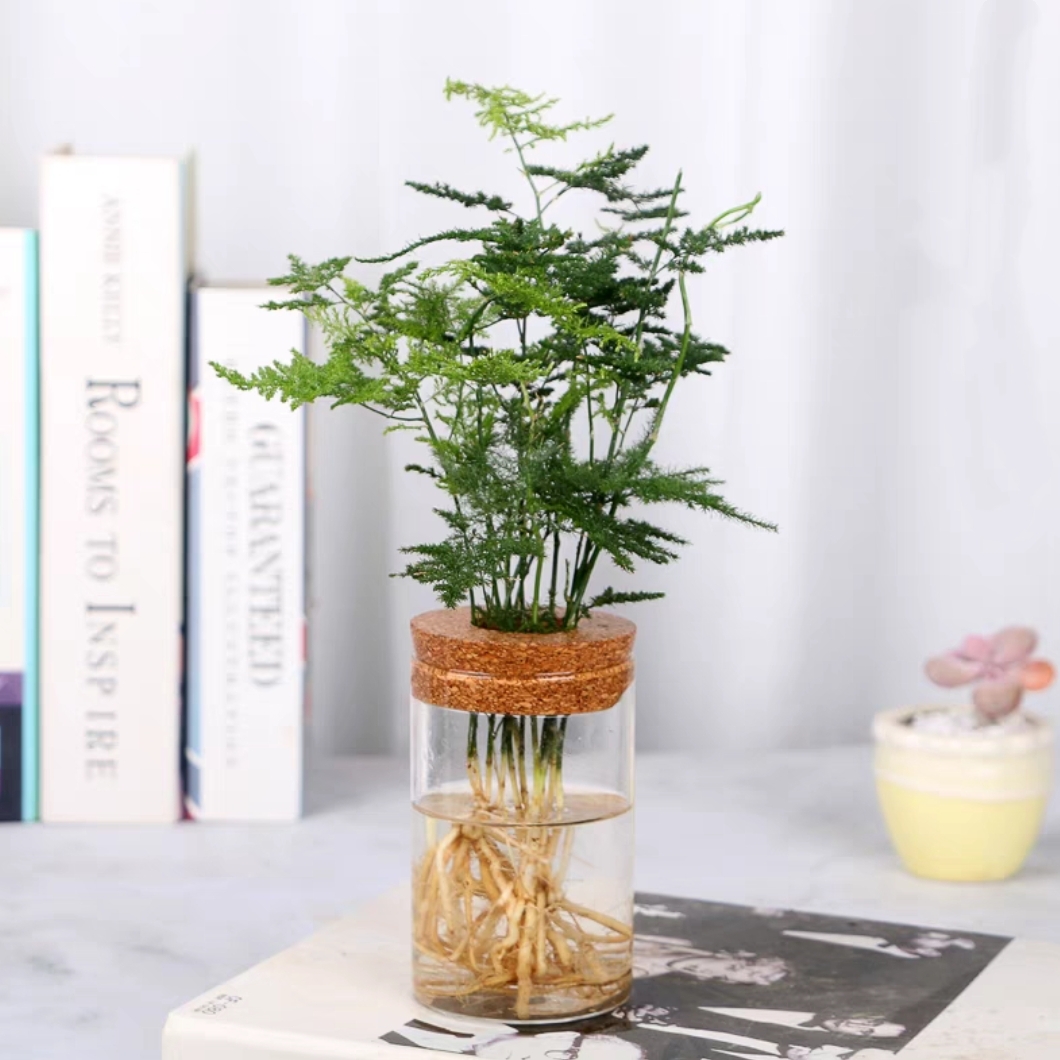 水培文竹+玻璃生态瓶网红水培桌面小植物盆栽好养植物花卉水培盆栽清爽干净盆栽
