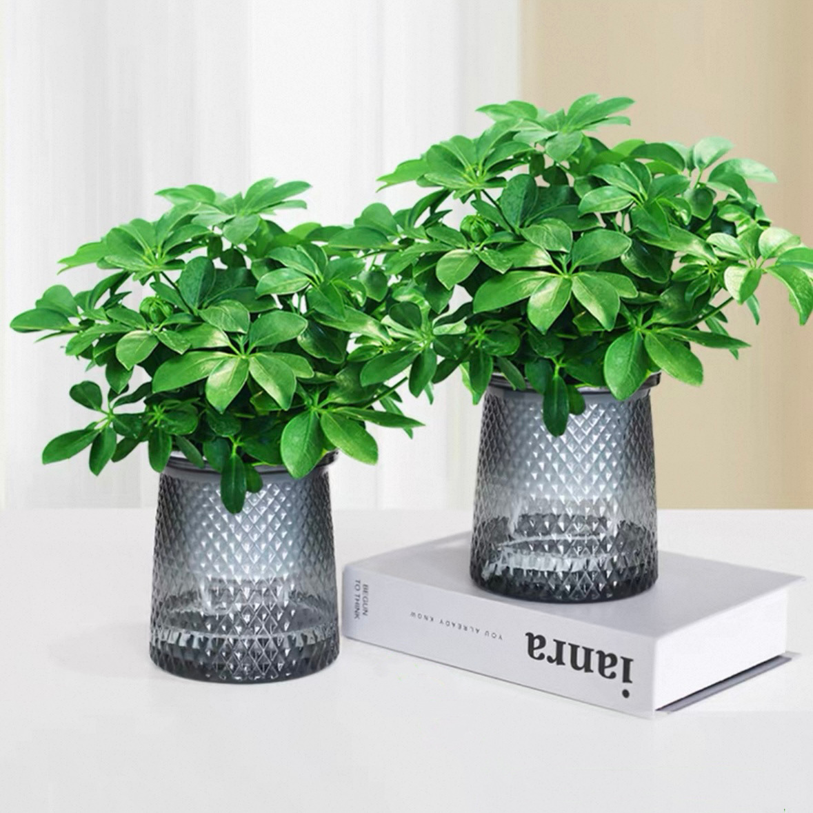 鸭脚木配自吸水懒人花盆八方来财植物盆栽好养好活花卉花店送花上门