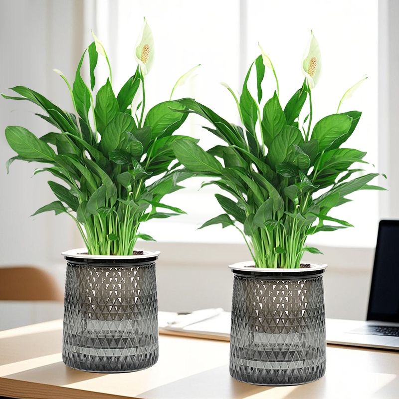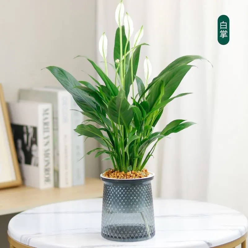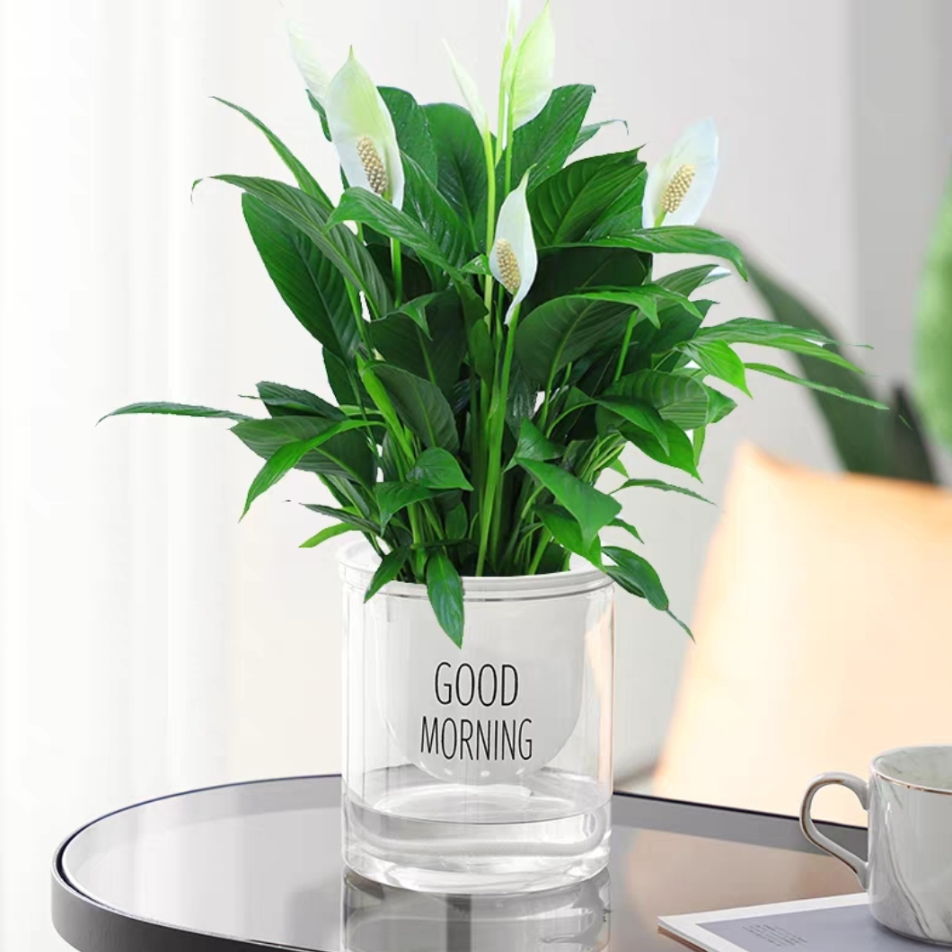 一帆风顺白掌配自吸水懒人花盆室内办公水培植物盆栽