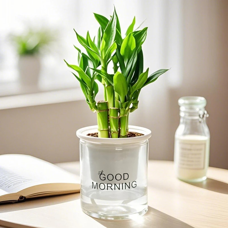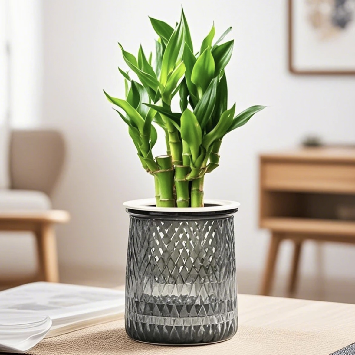 荷花竹配自吸水懒人花盆步步高富贵竹节节高室内办公水培植物盆栽