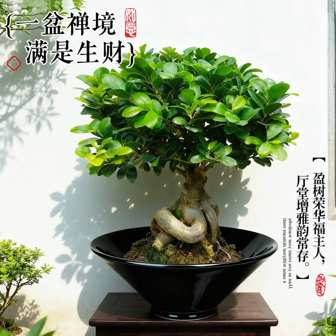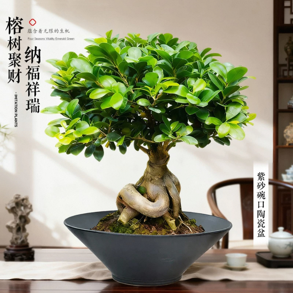 人参榕盆栽绿植提根老桩摇钱树发财树造型小叶人生榕树盆景植物金钱榕