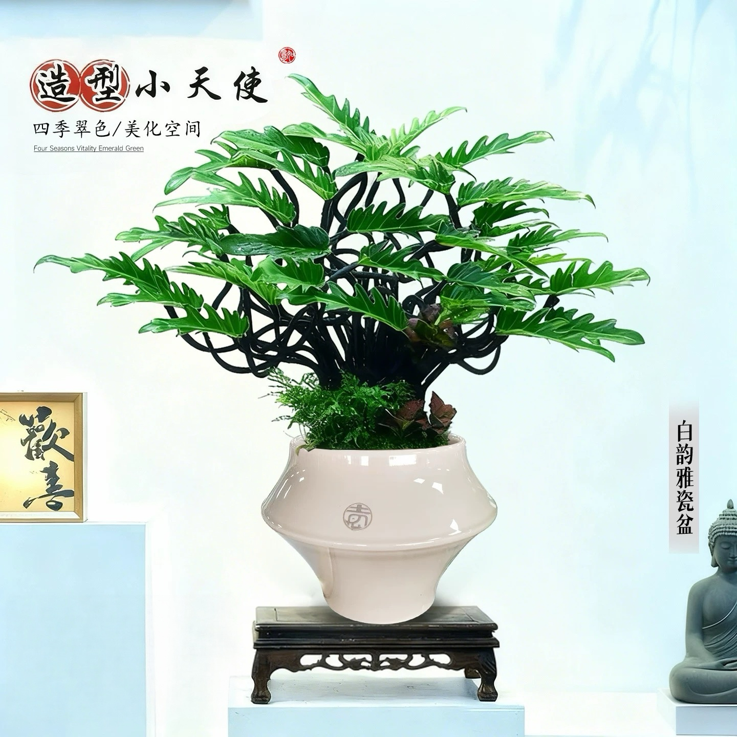造型小天使组合盆栽室内桌面大绿植书房办公茶几好养植物四季常青
