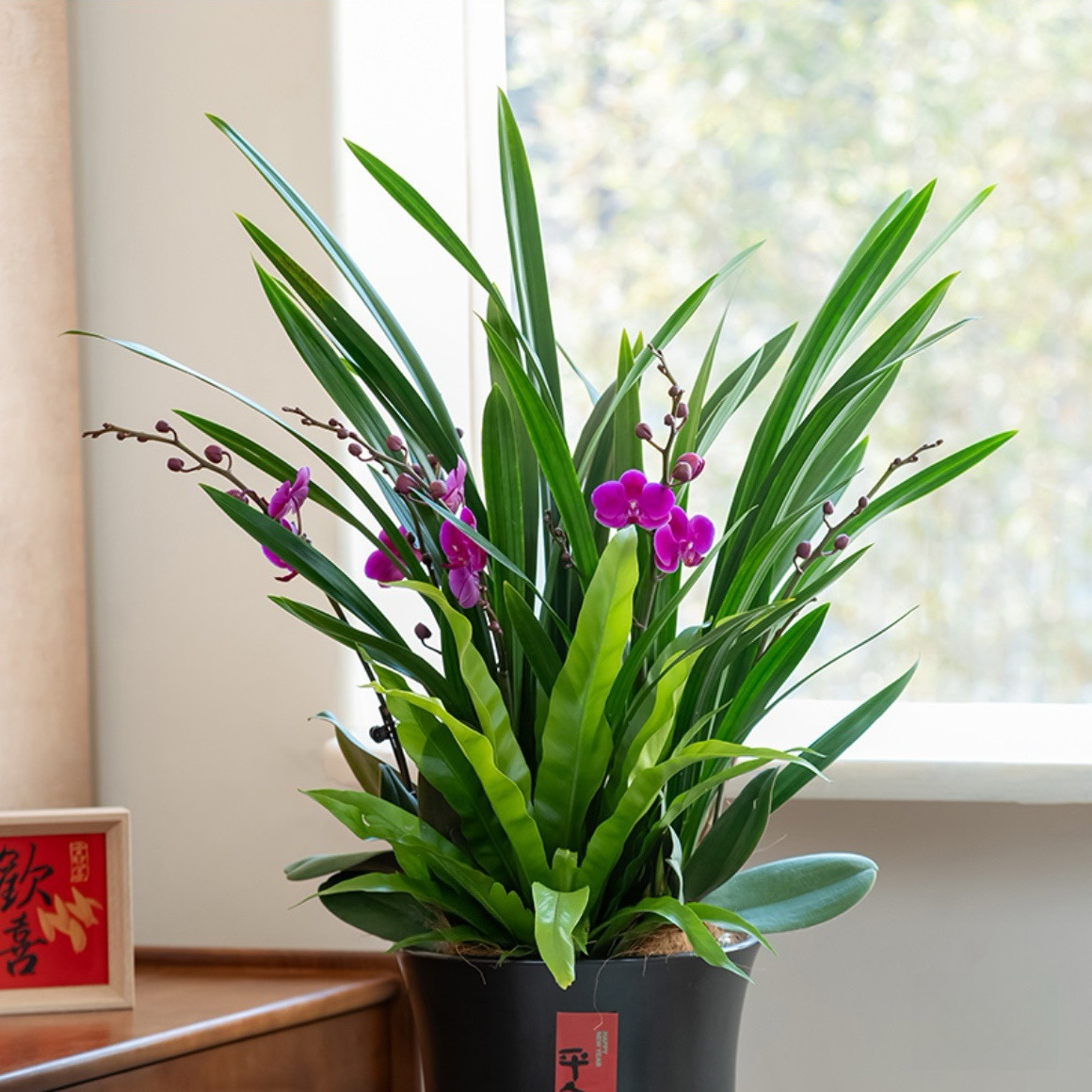墨韵清欢/蝴蝶兰莫兰组合盆栽十大兰花四季名贵花卉墨兰精品绿植