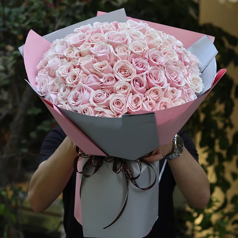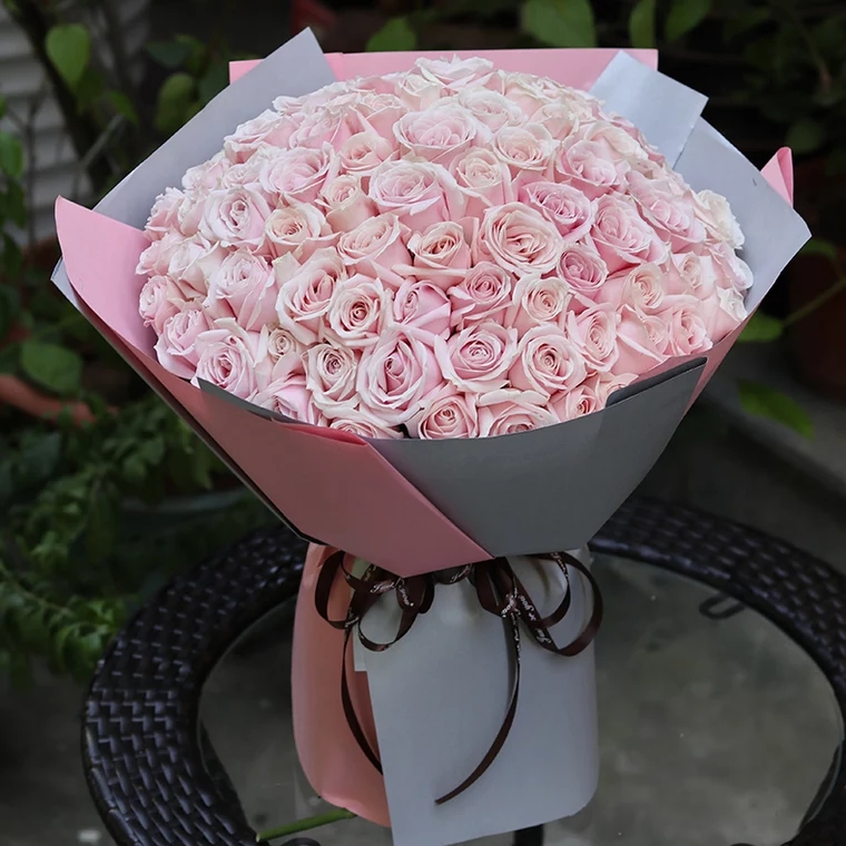 99朵粉色玫瑰花,精美包装,蝴蝶结扎束