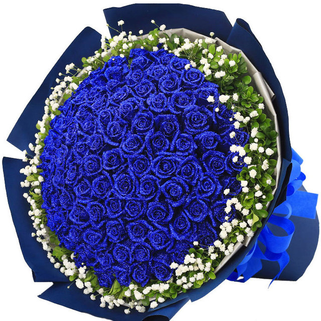 华尔兹之恋/99朵蓝色妖姬搭配满天星精美花束包装/大型花束/同城花店送花上门/仿真花花礼物