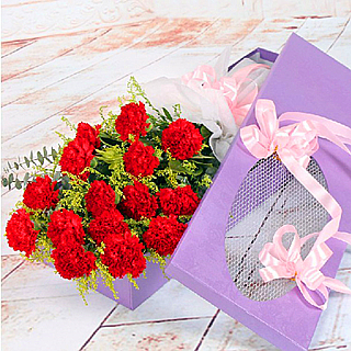 18朵红色康乃馨精美包装+长形礼盒盛放。