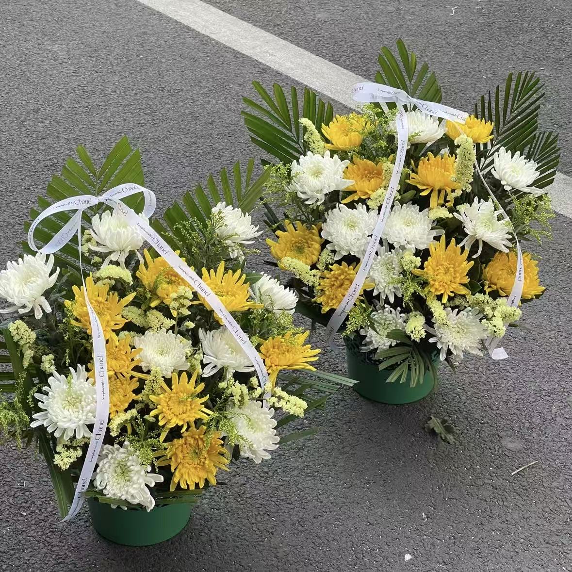 沉痛悼念9朵白菊花8朵黄菊花黄白菊花混搭手提小花篮006