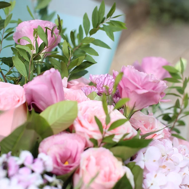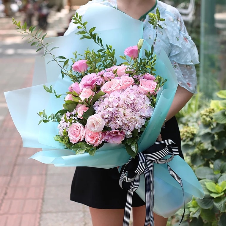 幸福花园-11朵粉玫瑰花+粉色洋桔梗+绣球+配花 精美包装