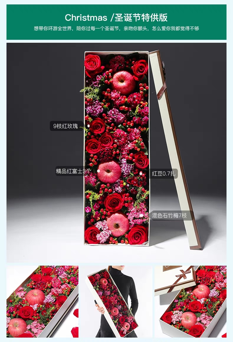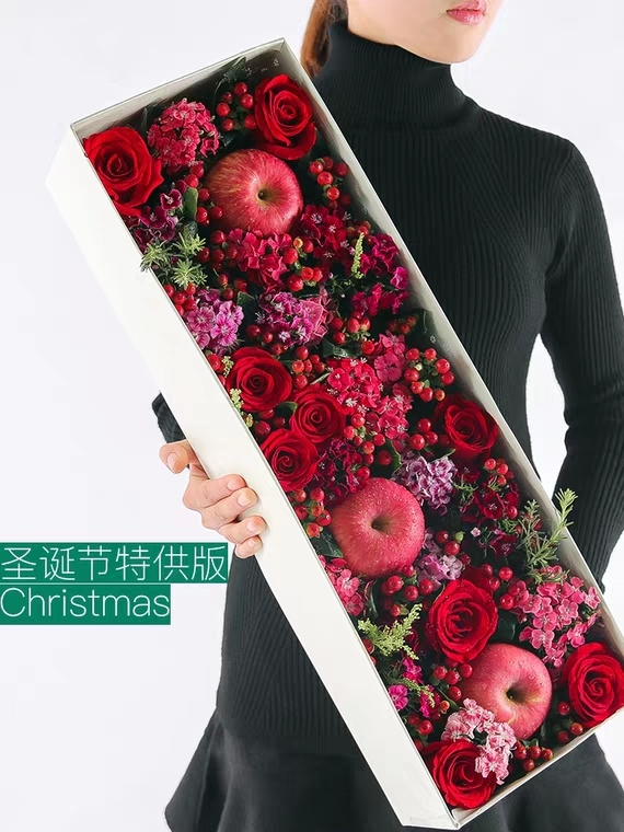 圣诞快乐-精选红玫瑰花圣诞精选礼盒盛放