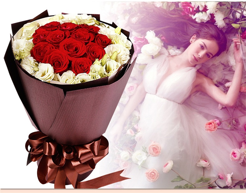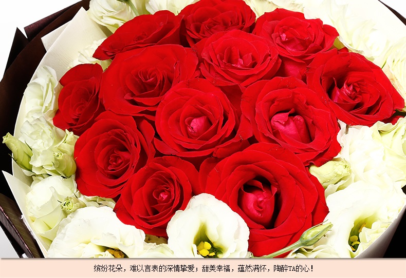 11朵红玫瑰,洋桔梗围边,精美包装纸包装