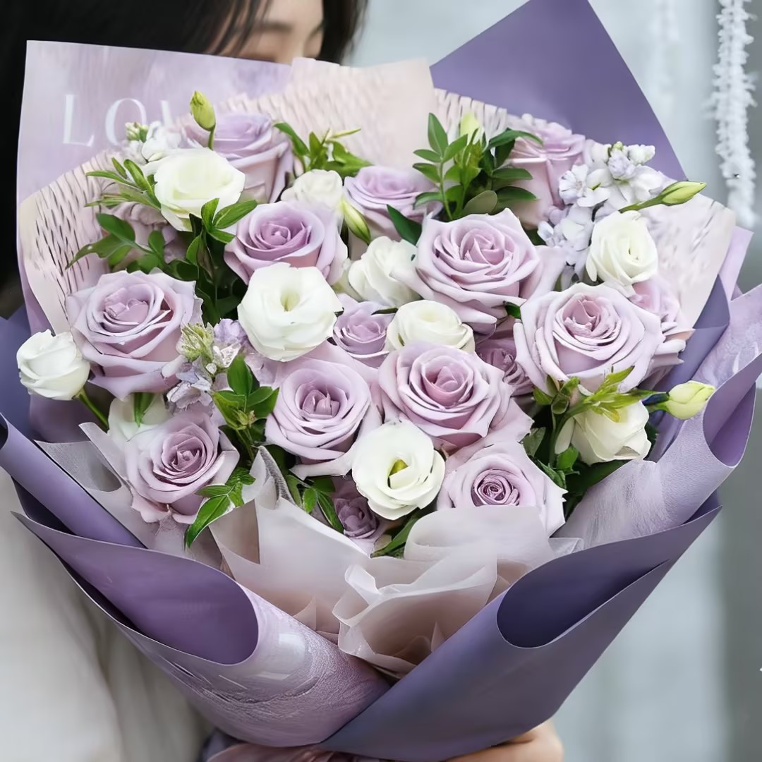 最美嫁纱/19朵紫玫瑰精美花束包装紫色玫瑰花海洋之歌紫霞仙子