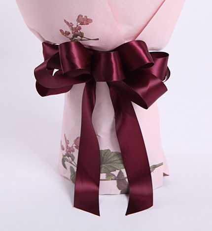 包 装:内层银灰色厚棉纸,外层豌豆花压纹纸,紫红色缎带花结