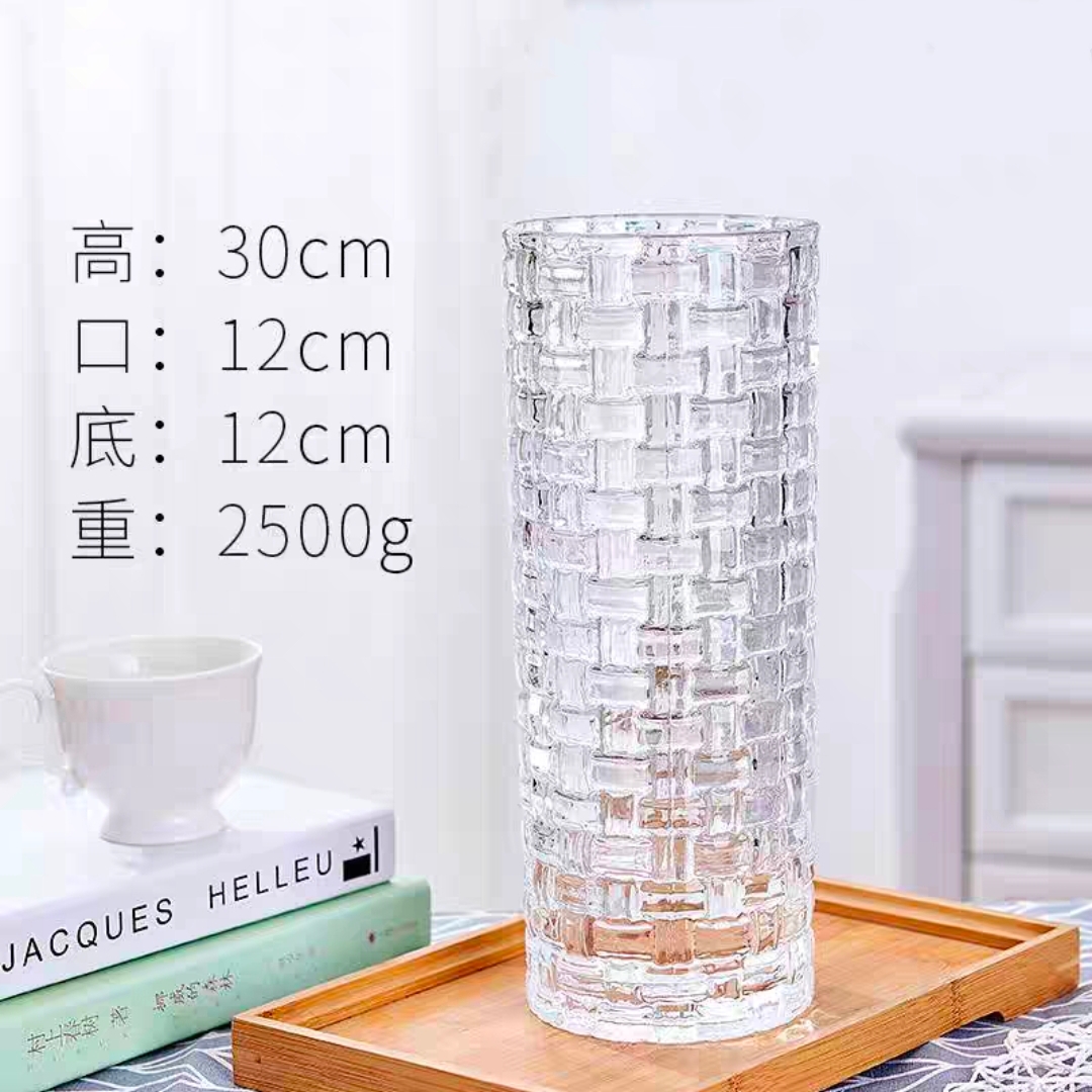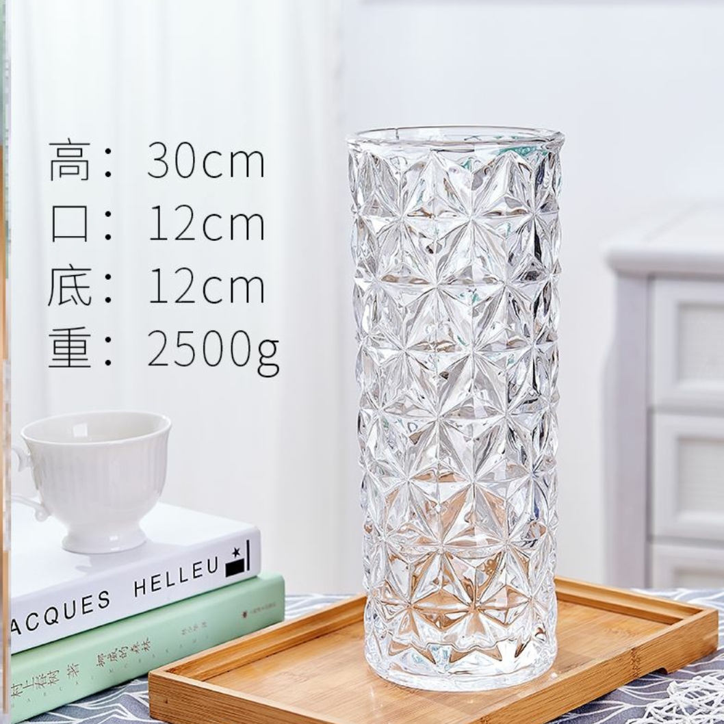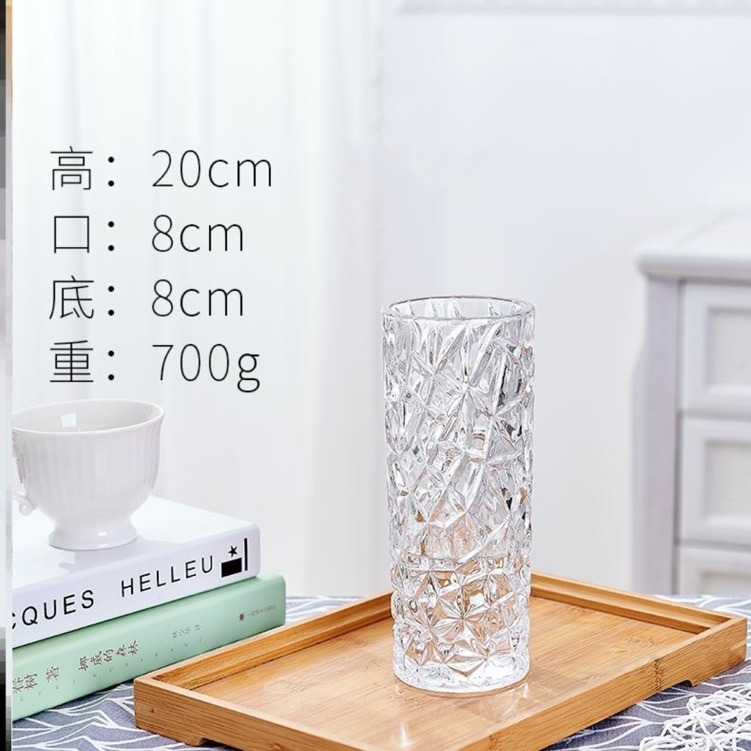 精美直筒水晶玻璃花瓶 插花插玫瑰花百合花富贵竹等