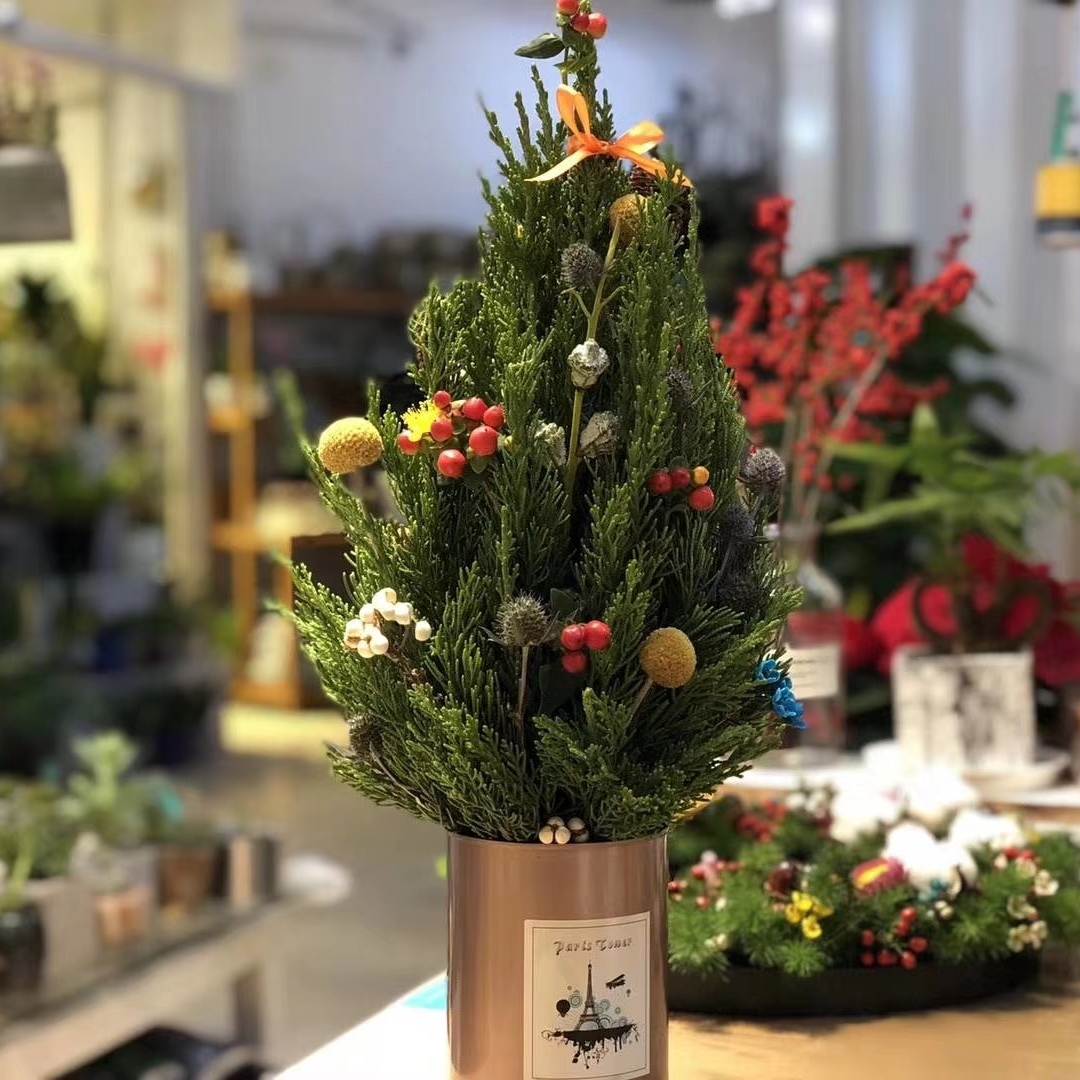 桧柏塔柏圣诞树是鲜切树枝制作而成,非标品,每盆花都不会完全一样,请已实物为准。订购前可联商家拍照看实物,谢谢。