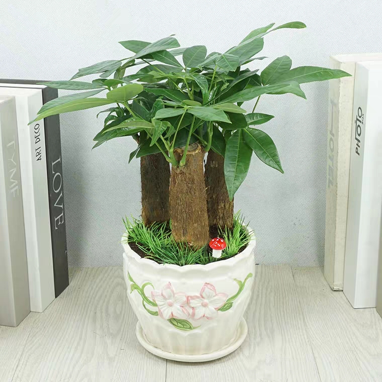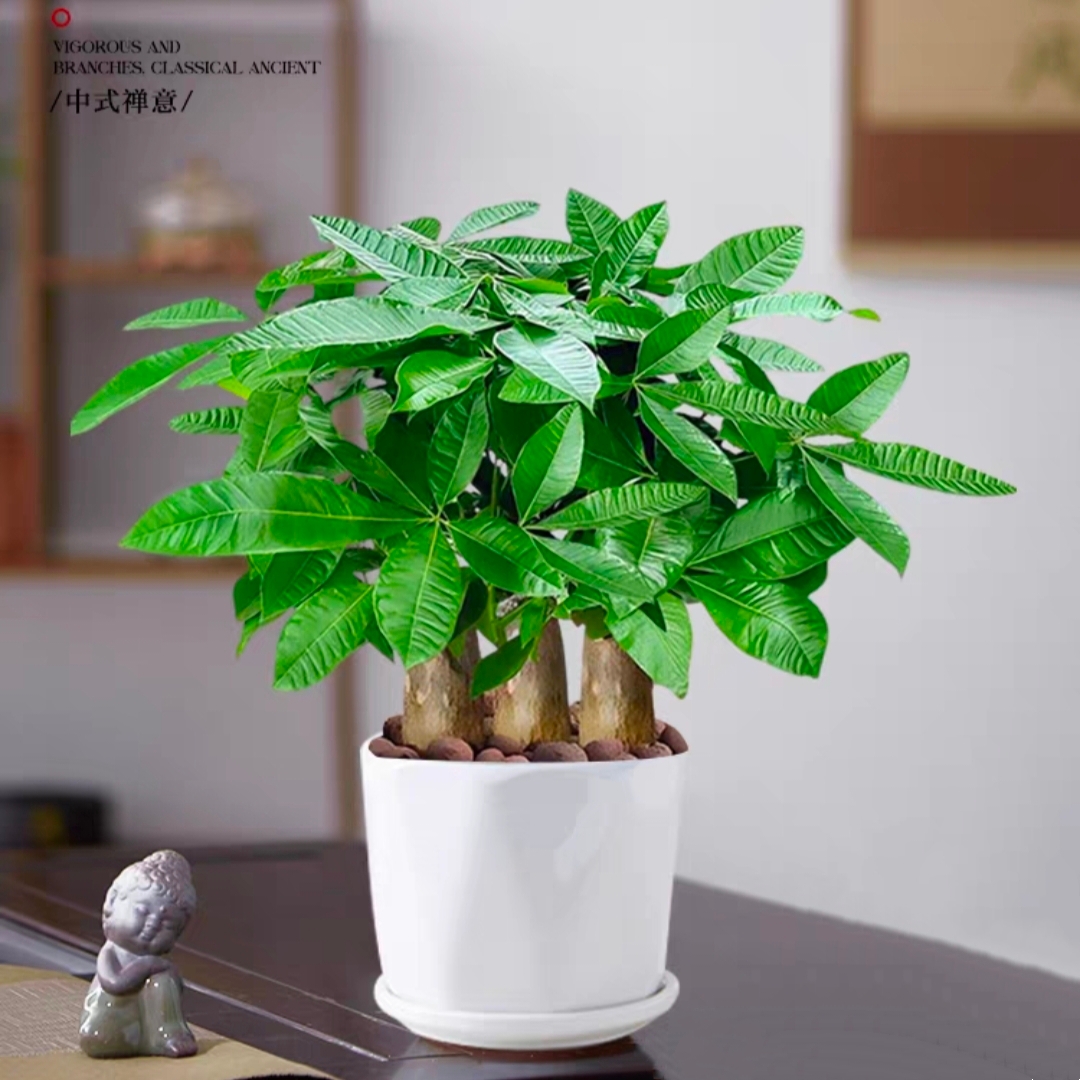 三颗发财树组合植物盆栽一盆三棵好养好活办公桌盆栽寓意好发财开业招财幸福盆栽3015