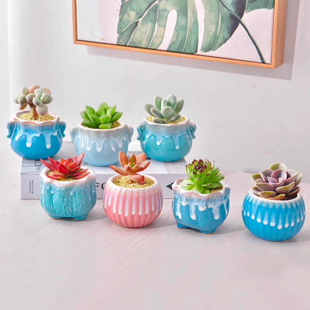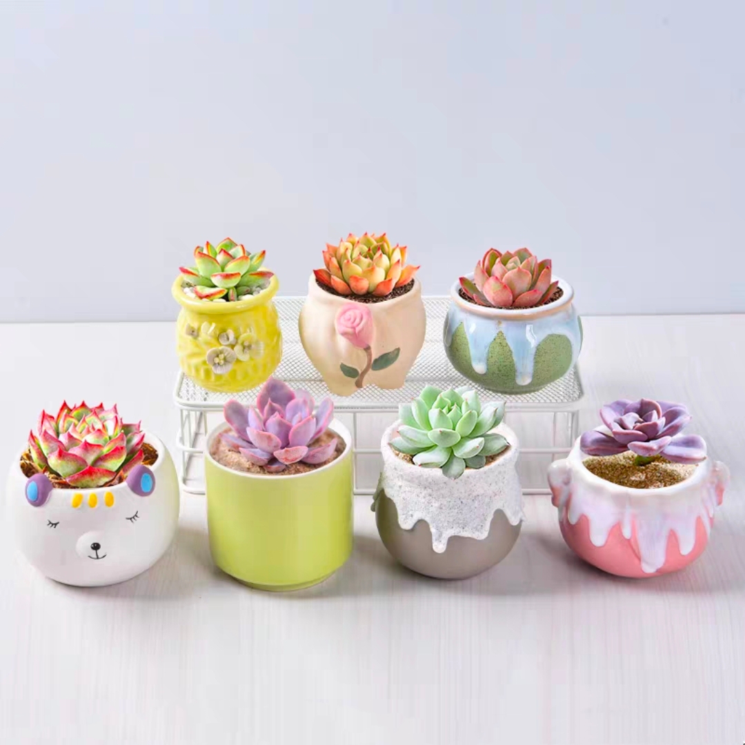 【多肉植物+瓷盆】1盆多肉植物配精美小瓷盆植物盆栽迷你花卉桌面摆放可爱萌萌哒
