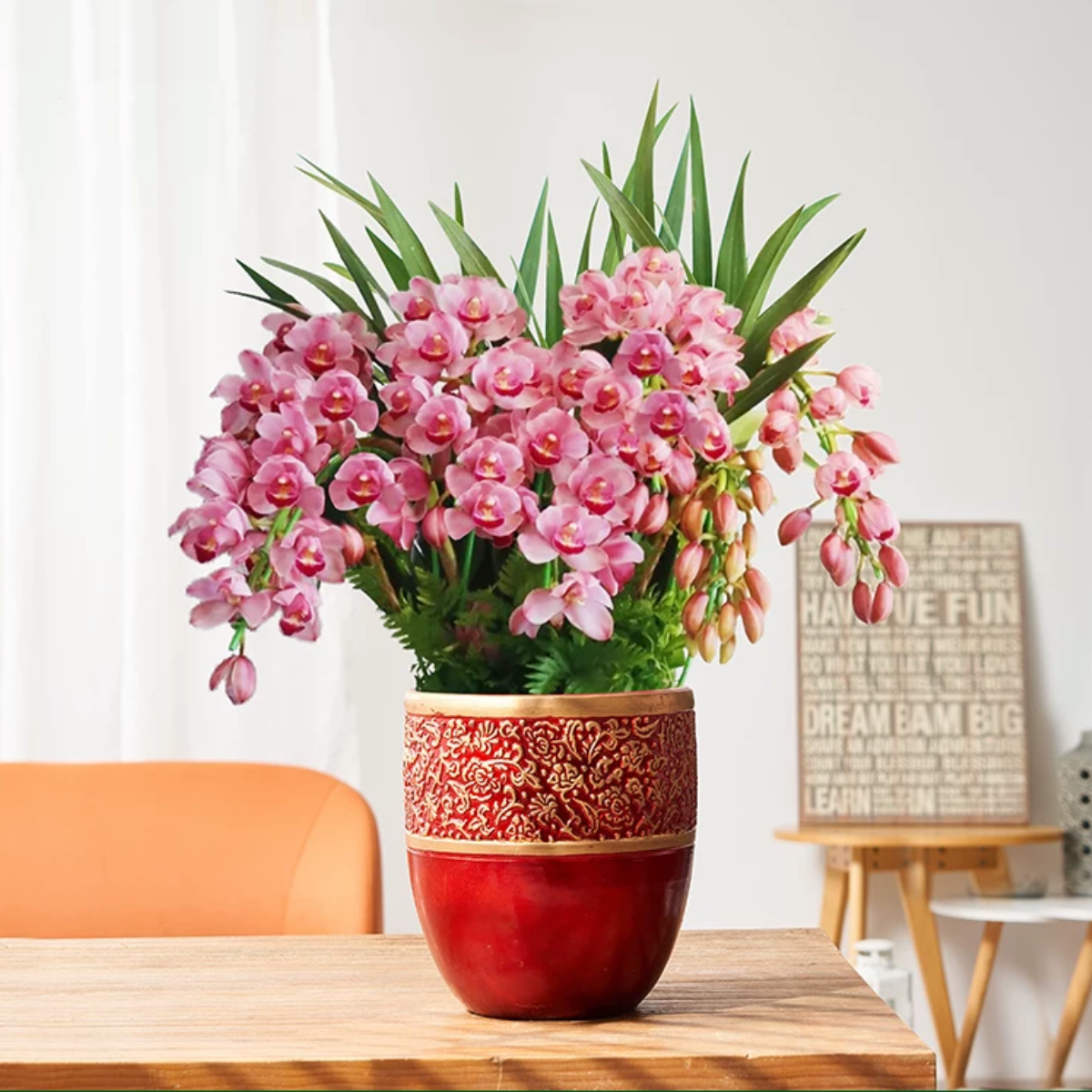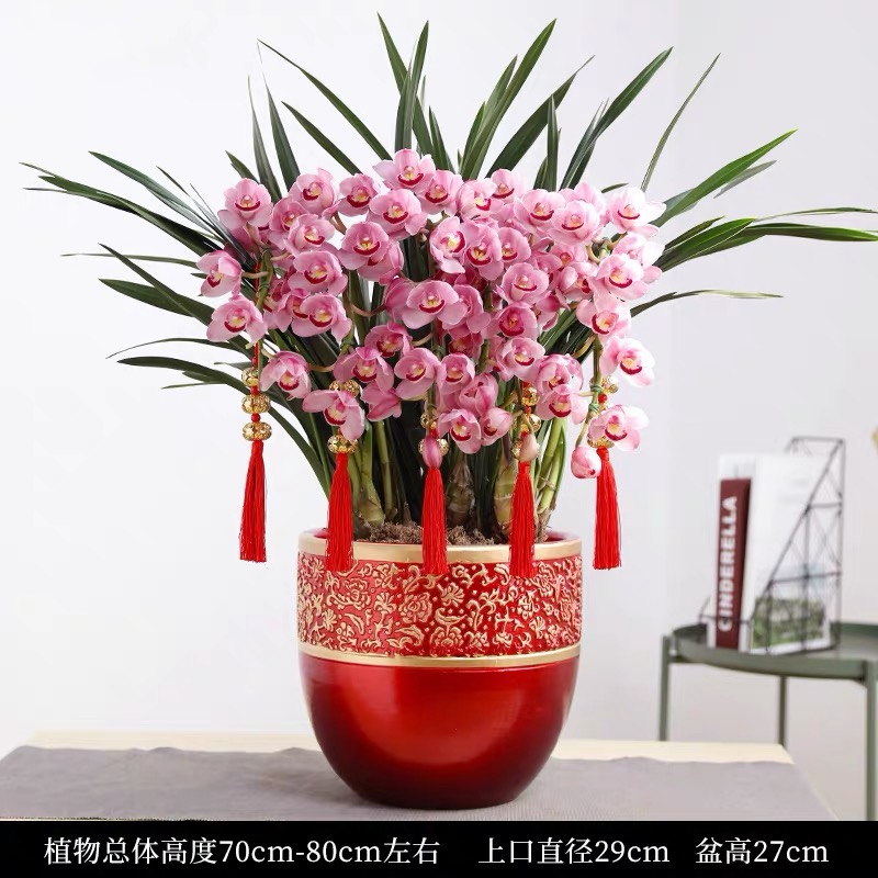 粉色大花蕙兰组合盆栽韩国垂兰粉色拱兰大花惠兰单株大花卉兰盆栽