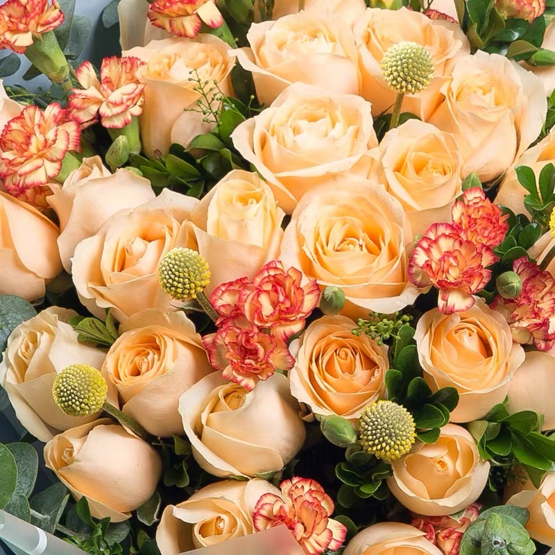 33朵香槟玫瑰加配花精美花束包装