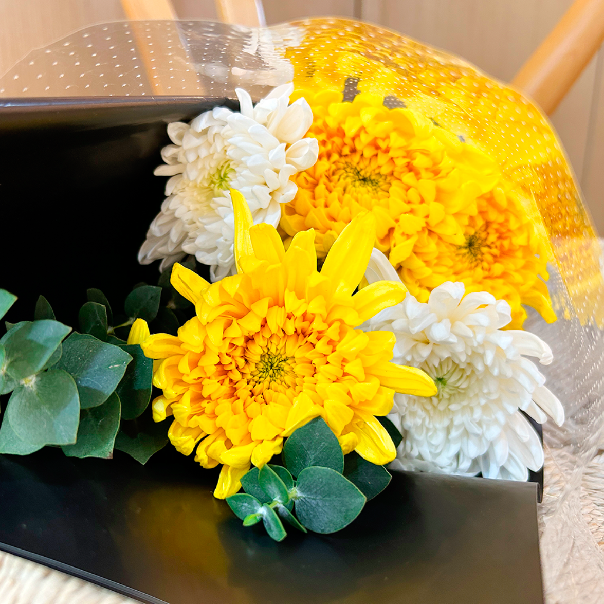 冬至追思黄白菊花混搭花束3支黄菊花2支白菊花混搭