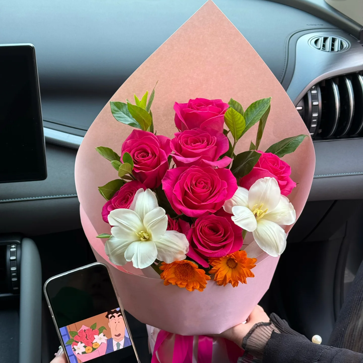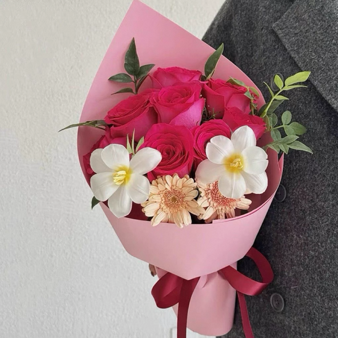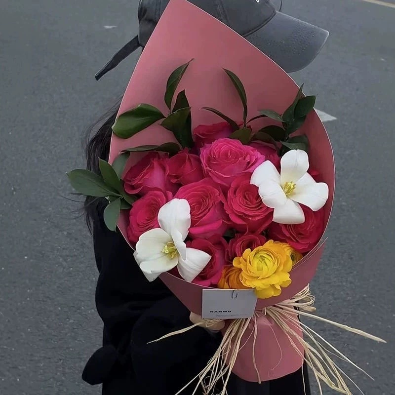 广志送美伢的花9朵玫瑰花束配郁金香等鲜花送花上门