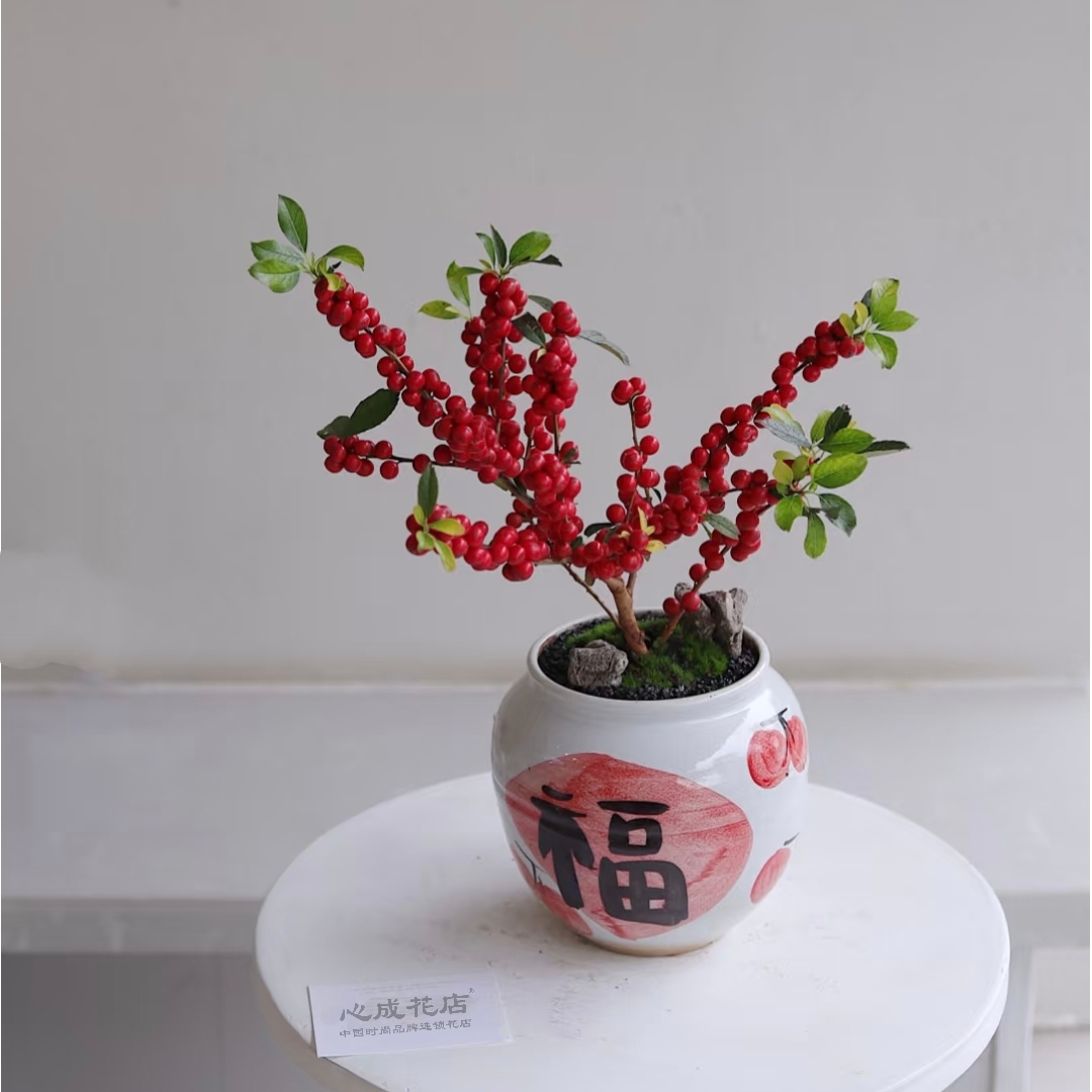 北美冬青盆栽办公室桌面绿植客厅玄关摆件室内盆景迷你盆栽植物桌面微景观
