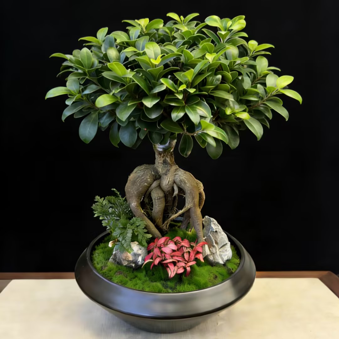 人参榕盆栽绿植提根老桩摇钱树发财树造型小叶人生榕树盆景植物金钱榕