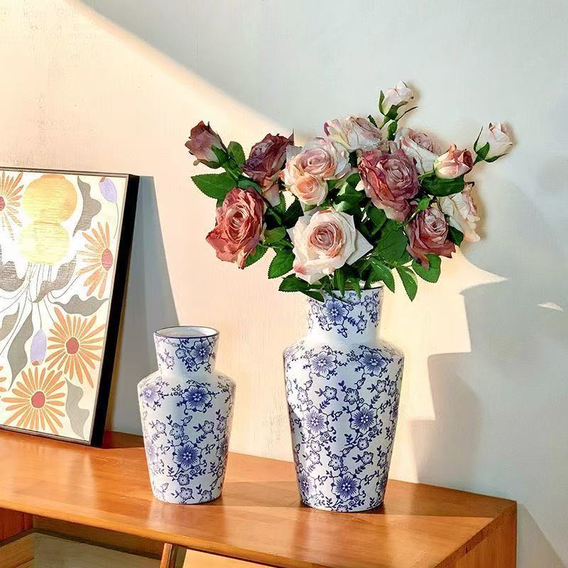 国风青花陶瓷花瓶青花瓷装饰摆件高级感古风复古鲜花水培插花花器