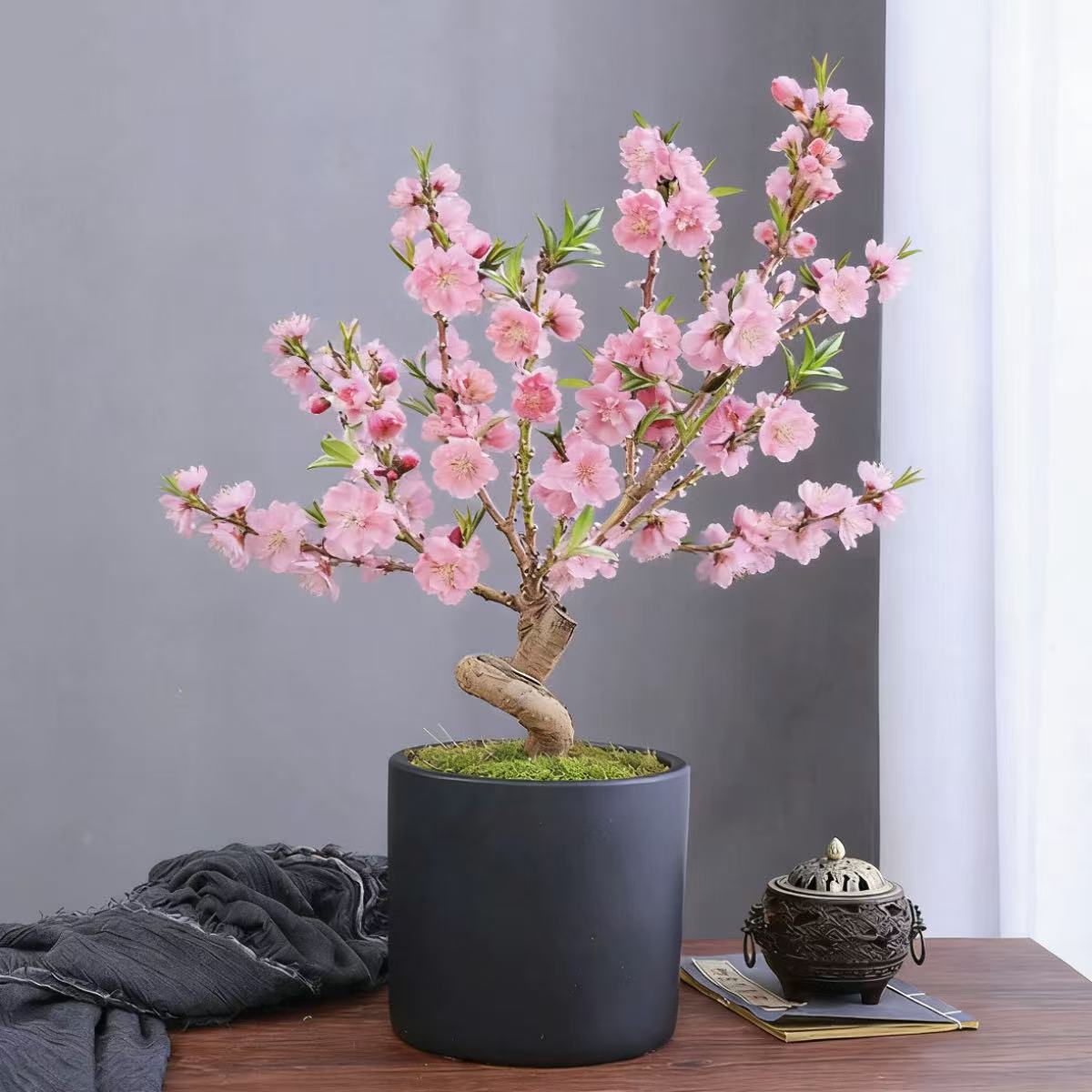桃花树盆栽老桩苗阳台寿心桃子桃树盆景室内庭院真桃树盆栽